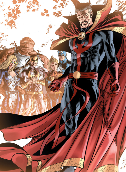 ภายหลัง ดร.เสตรนจ์ ได้กลายเป็นบุคคลที่มีความสามารถทางด้านเวทมนต์แล้วนั้น นอกจากเขาจะนำมาใช้ในการปกป้องภัยคุกคามจากมิติหรือพลังมืดต่างๆ เยี่ยงฮีโร่ทรงพลังคนหนึ่ง ในฉบับ Comic เขาก็มีไปปรากฏตัวร่วมต่อสู้กับผองเพื่อนร่วมจักรวาล Marvel อยู่หลายครั้งด้วยกัน